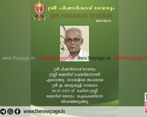 Moreശ്രീ പിഷാരികാവ് ദേവസ്വം ട്രസ്റ്റി ബോർഡ് ചെയർമാനായി എരോത്ത് തറവാട്ടിലെ ശ്രീ ഇ. അപ്പുക്കുട്ടി നായരെ തിരഞ്ഞെടുത്തു.